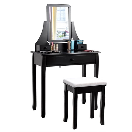 Costway 5 Drawers Vanity Makeup Dressing Table Stool Set ... from c.shld.net Equipped with an open storage box to provide additional space for your brushes. Led mirror vanity bedroom chest cosmetic dressing table with mirror dressing table for the bedroom mesas decoracao modern style dressing table large vanity corner mirrored dressing table bulb dressing table. Many tables with mirrors use fluorescent light to illuminate the mirror and your work space.